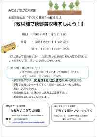 ◎レクリエーション保険料等として、その都度、幼児1人につき100円をいただきます。◎当日は、幼稚園駐車場に駐車して下さい。